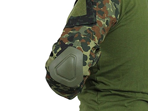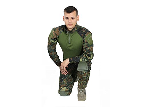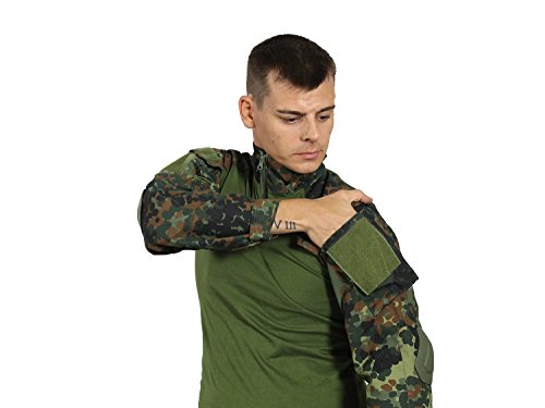 Unser sportlich geschnittenes Combat Shirt erweitert die BASICS Produktpalette um ein Combat Shirt für warmes Klima.Im Gegensatz zu Feldjacken ist das Combatshirt (oder auch UBACS) explizit dafür gedacht, unter einer Weste oder einem Plattenträger getragen zu werden. Während Schulterpartie, Kragen und Ärmel die gleiche Performance wie ein Feldhemd bieten, erlaubt der elastische, schnell trocknende Torso den Komfort eines Sporthemdes – ideal bei schweisstreibender Betätigung. Das Shirt kommt mit zwei vormontierten Ellbogenschonern aus einer Schaumstoff / Weichplastik Kombination, die sich zur Reinigung leicht entnehmen lassen! Die beiden Armtaschen erlauben das Verstauen von Ausrüstung, die man schnell braucht.Da diese Bekleidung für aktiven Einsatz gedacht ist, ist sie naturgemäß auch körpernäher, enger anliegend geschnitten als unsere normale Felduniform, wir haben daher für euch eine möglichst detailierte Grössentabelle verlinkt/erstellt, die euch erlaubt die Grösse perfekt auszusuchen! Wir bitten daher darum dies bei Eurem Kauf zu beachten. Wir empfehlen waschen bei 30° ohne WeichspülerDie letzten Angebotsbilder zeigen das Begadi Basics Combat Shirt zusammen mit den BEGADI Basics Combat Pants.Lieferumfang: Nur das Combat Shirt Hergestellt aus: 65% Baumwolle / 35% Polyester