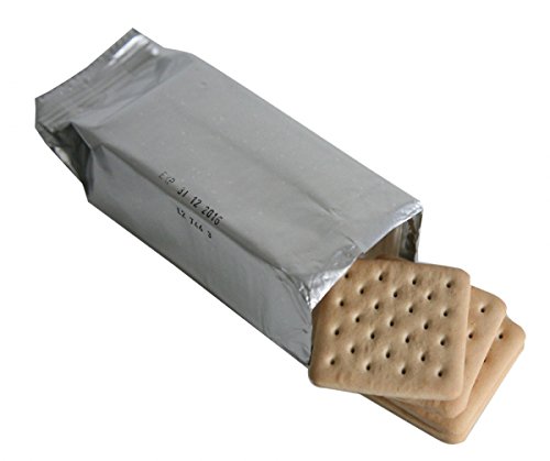 10 Pakete Hartkekse (Panzerplatten) aus Original Bundeswehr Produktion Nettogewicht je Paket 125 gr. Wie im EPA. Die genial, universell zu jeder Gelegenheit verwendbaren Hartkekse sind seit Jahrzehnten Bestandteil des bei der Bundeswehr ausgegebenen Epa´s, der Tageration für den Soldaten im Feldeinsatz. Die Rezeptur und die Verpackung macht die Kekse sehr lange haltbar und exrem unempfindlich gegen Umwelteinflüsse wie Nässe, Hitze, Kälte und Nagerfraß. Somit sind sie auch optimal für Trekking und Outdoor Aktivitäten geeignet. Zutaten (Herstellerangaben): Weizenmehl, Zucker, pflanzliches Fett, Weizenstärke, Glukosesirup, Speisesalz, Malzextrakt (Weizen + Gerste), Backtriebmittel, Aromen, Emulgator: Soja Lecithin. Kann Spuren von Milch enthalten. Nährwert je 100 g: Brennwert 1825 kJ / 433 kcl, Fett: 11,5 g, davon gesättigte Fettsäuren 5,5 g, Kohlenhydrate 73,9 g, davon Zucker 15,9 g, Ballaststoffe 2,2 g, Eiweiß 8,4 g, Salz 1,2 g