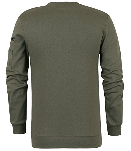 ililily Solid Color US ARMY Embroidery Slim Fit Sweatshirt Pullover Jumper TopSolid color and contrast patch on front slim fit sweatshirt topUS ARMY embroidery letting stitches and unique zippered patch pocket on armLong sleeves and crew neck sweatshirt topPair it with your favorite jeans or pantsPlease check sizing info in the product description below to make sure the item measurement before ordering. All the product size label's attached with Asian size.Material:100% CottonWash Instruction:Machine wash cold separatelyTumble dry lowMeasurement:US-S / Asian-LChest: 90CM/35.4IN, Length:67CM/26.4INUS-M/ Asian-XLChest: 94CM/37IN, Length:69CM/27.2IN