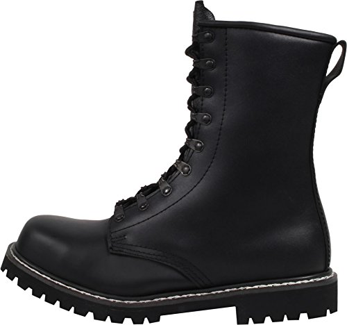 Der Springerstiefel mit verarbeiteter Kunststoffkappe bietet vielseitige Einsatzmöglichkeiten und ist ein echtes Allroundmodell. Der Schaftabschluss ist gepolstert und der Fersenbereich ist für einen optimalen Tragekomfort extra verstärkt. Der verarbeitete Schaumstoff hält den Fuß zusätzlich trocken und warm.Weitere klassische Springerstiefel Eigenschaften · Obermaterial: 100 % Rindleder· Innensohle: hochwertiger Schaumstoff (EVA)· Futter: Leder· Laufsohle: Gummi· 9-Loch Schnürung· mit Stahlkappe