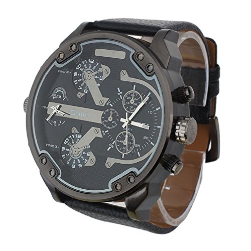 Tonsee Luxus Militär Armee Dual Zeit Quarz große Dial Armbanduhr OULM Schwarz